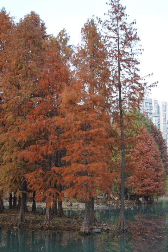 初冬時(shí)節(jié),白鷺園棕褐色的水杉林間,挺拔樹干與水中倒影構(gòu)成對(duì)稱畫卷。木質(zhì)棧道蜿蜒林中,水鳥掠過水面,為靜謐畫面注入靈動(dòng)生機(jī),成為逃離喧囂、尋覓寧?kù)o的絕佳去處。