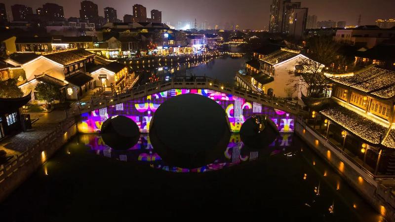即日起至3月31日,每晚18:00-21:00,斜塘老街新春光影秀準(zhǔn)時(shí)開(kāi)啟,攬?jiān)聵蚺稀按簡(jiǎn)⑿鲁蹋鞴饪棄?mèng)”;懷夢(mèng)街內(nèi)“踏步生花,隨行綻焰”,沉浸式感受夢(mèng)幻浪漫的元宵夜景。