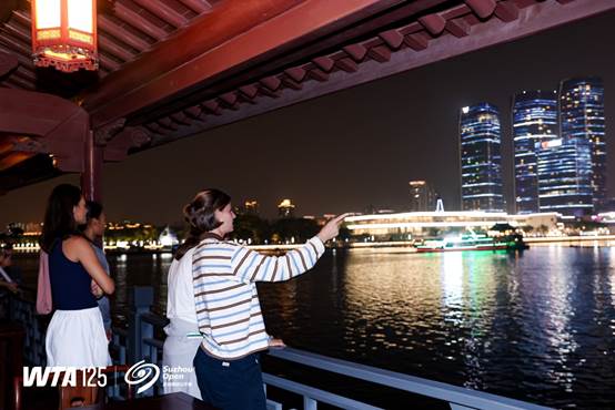 The tennis players who are participating in the 2025 WTA 125 Suzhou Open that is scheduled in SIP from Sept 27 to Oct 5 enjoyed a cruise tour on Jinji Lake on the evening of the opening day of the event.
