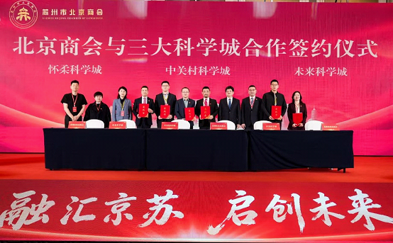 At the event, the chamber of commerce signed an agreement with Zhongguancun Science City, Huairou Science City and Future Science City to launch strategic cooperation in accelerating integrated development of Beijing and Suzhou.