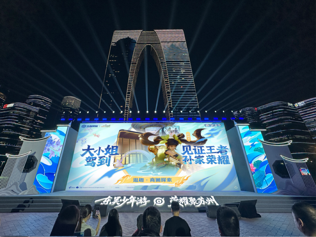 An event blending Suzhou’s cultural tourism with the Honor of Kings—the world’s most-played mobile multiplayer online battle arena (MOBA) game—took place at the square by Jinji Lake on July 15, offering both locals and tourists an opportunity to learn more about cultural tourism attractions in Suzhou and the vitality of the city.