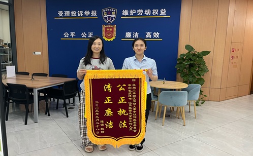 日前,勞動(dòng)者陳女士將一面印有“公正執(zhí)法清正廉潔”的錦旗送至高貿(mào)區(qū)勞動(dòng)監(jiān)察大隊(duì),表達(dá)對工作人員的誠摯謝意。