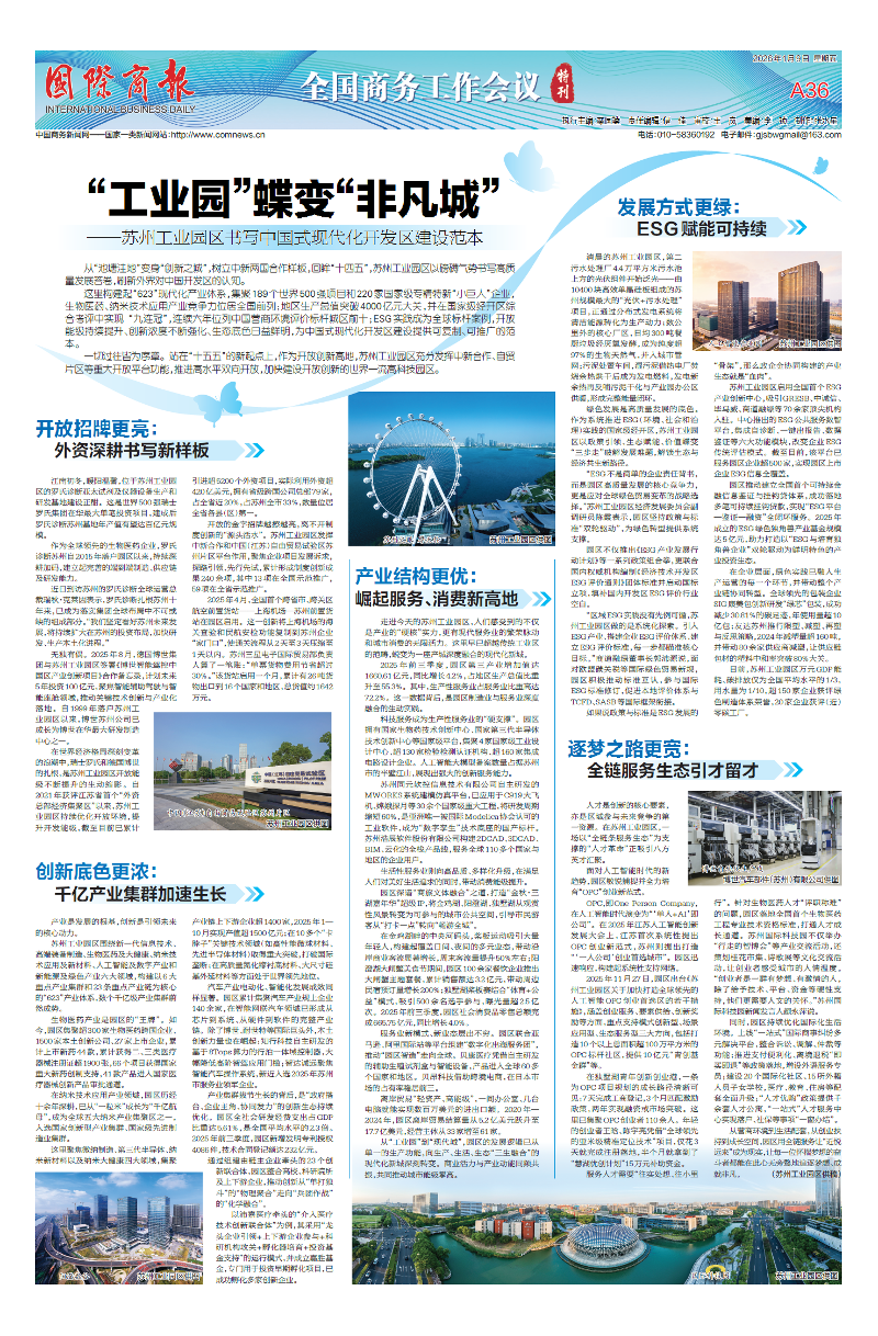 綠色發展是高質量發展的底色。作為系統推進ESG(環境、社會和治理)實踐的國家級經開區,蘇州工業園區以政策引領、生態賦能、價值蝶變“三步走”破解發展難題,解鎖生態與經濟共生新路徑。