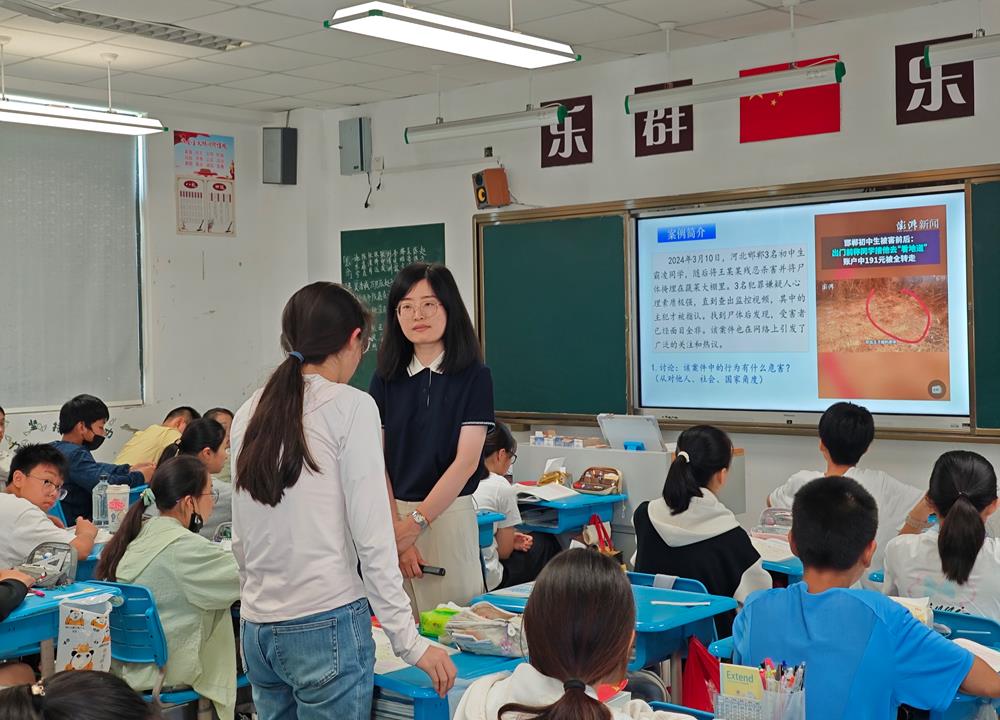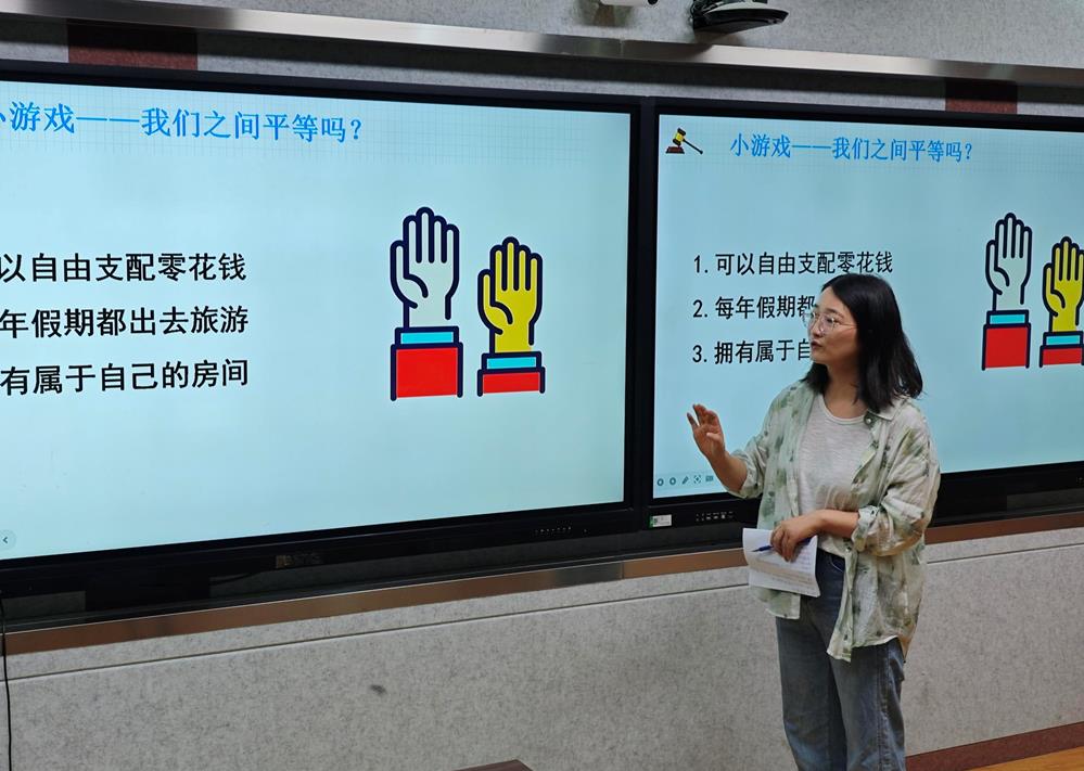 星海實(shí)驗(yàn)初級中學(xué)的陳燕秋老師以“嚴(yán)于律己:守住行為邊界做自律好少年”為總議題展開,通過設(shè)置“年齡小”=“免罰牌”?“小錯(cuò)”釀成“大罪”?“自縛”還是“自由”?等三個(gè)問題,帶領(lǐng)學(xué)生探尋法律責(zé)任的真相,認(rèn)清不良行為的演變陷阱,體會自律帶來真正的自由。