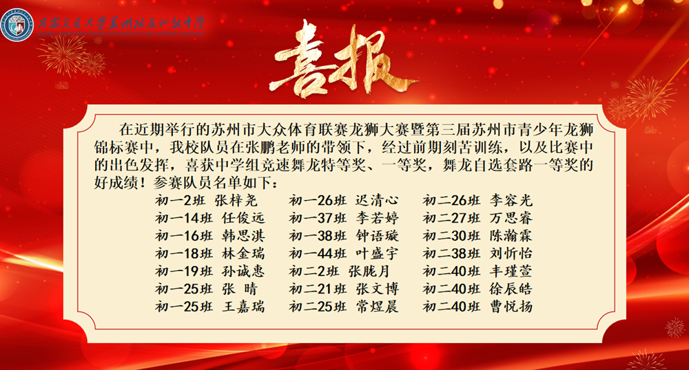 每一次騰躍,都是日夜打磨的回響。接到比賽通知后,龍獅隊(duì)的同學(xué)們利用放學(xué)后的課余時(shí)間加緊備戰(zhàn),從基礎(chǔ)動(dòng)作打磨到套路細(xì)節(jié)優(yōu)化,從器材檢查維護(hù)到團(tuán)隊(duì)默契培養(yǎng),每一個(gè)環(huán)節(jié)都精益求精。雖然天氣嚴(yán)寒、訓(xùn)練條件有限,但在張鵬老師的悉心指導(dǎo)與帶領(lǐng)下,隊(duì)員們克服體能與技術(shù)雙重挑戰(zhàn),始終以飽滿(mǎn)的熱情投入訓(xùn)練,用汗水澆灌出勝利的果實(shí)。作為曾在蘇州市首屆、第二屆龍獅賽事中屢獲佳績(jī)的優(yōu)秀隊(duì)伍,西附初中龍獅隊(duì)此次再度登頂,彰顯了學(xué)校在非遺文化傳承與素質(zhì)教育融合方面的顯著成效。